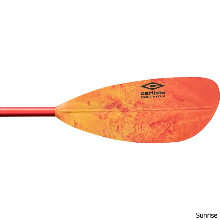 The Carlisle® Magic Mystic is a durable and efficient introductory kayak paddle. The two-piece aluminum shaft and fiberglass-reinforced polypropylene blades provide a durable, reliable option. The no-fail push-button ferrule allows blades to be set inline, or feathered at 60° for right or left-handed control.
