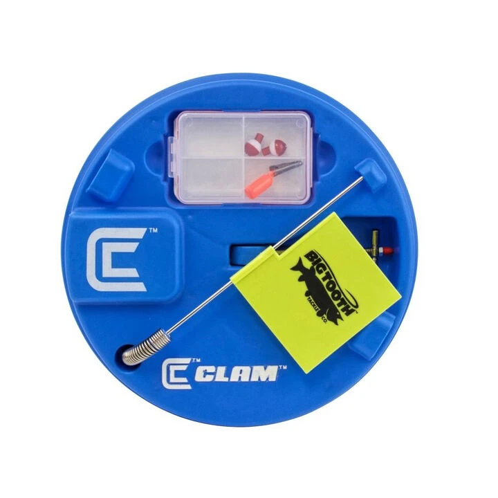 The thermal foam liner is completely sealed for durability and comes with a handy tackle compartment that has its own secure spot on the tip up. A bit larger in diameter in size, it fits over a 10″ hole – it completely insulates and seals the ice hole.