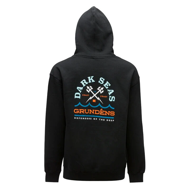An ultra-comfortable cotton-poly hoodie built to serve your need of exploring the ocean’s depths, spun with a dose of darkness from Grundéns® comrades at Dark Seas®. The Grundéns® X Dark Seas® collab ventures past the shoreline to create timeless designs inspired by the human spirit’s natural draw to water. Forged by a kinship of the wayward kind, Grundéns® X Dark Seas® products dive into the depths of mixing seafaring traditions with a wave of disruptiveness, encouraging a new generation of voyagers to explore their own path. Where the compass takes you from here is up to you.