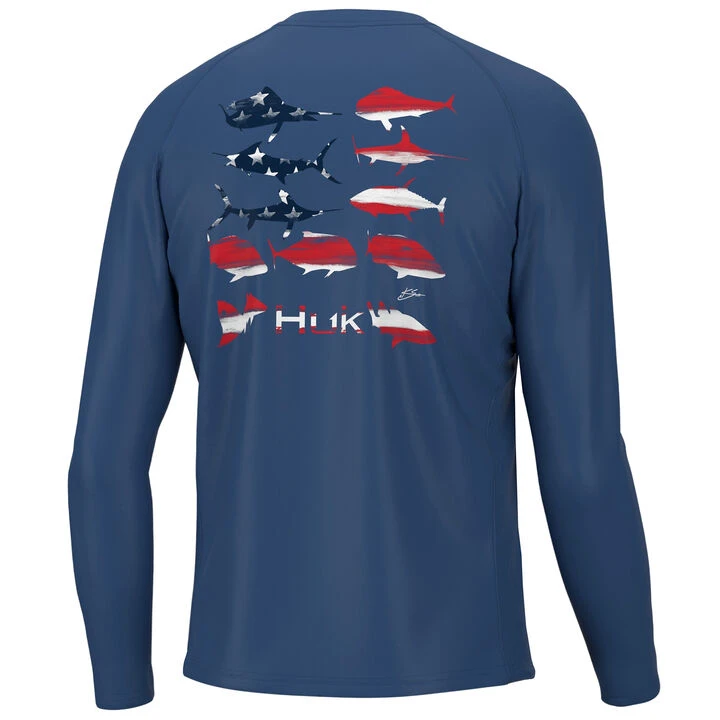 Huk® Men’s Pursuit Long-Sleeve features KC Scott’s Flag Fish graphic. This lightweight crew neck shirt is an ideal layer on cooler days and perfect worn by itself when it’s hot. With +UPF 30 to block UVA and UVB rays for all-day sun protection, stain-resistant and anti-microbial treatments, the Pursuit shirt is a must-have for any angler’s arsenal.