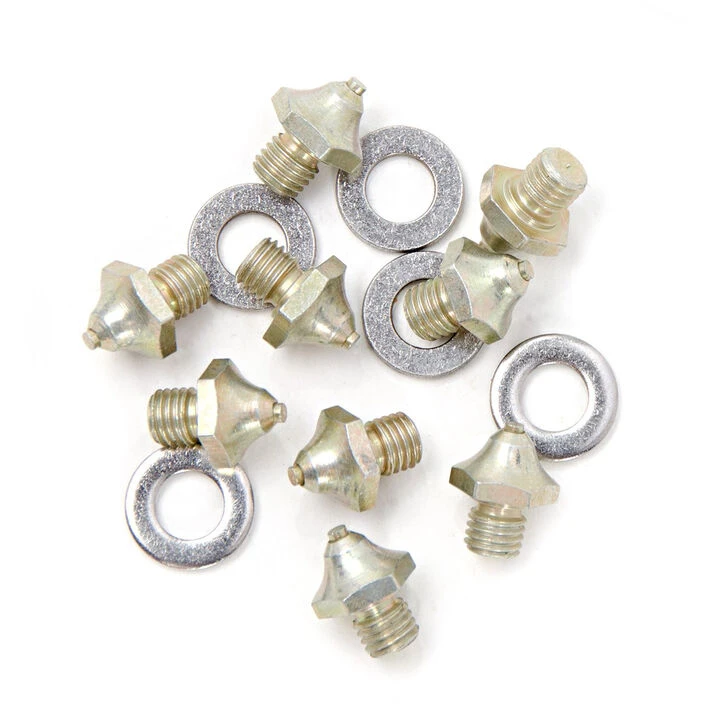 Korkers® CastTrax™ Carbide Threaded Spikes provide added traction on wet and slick surfaces.