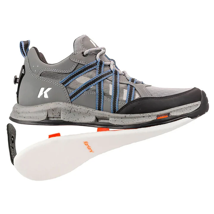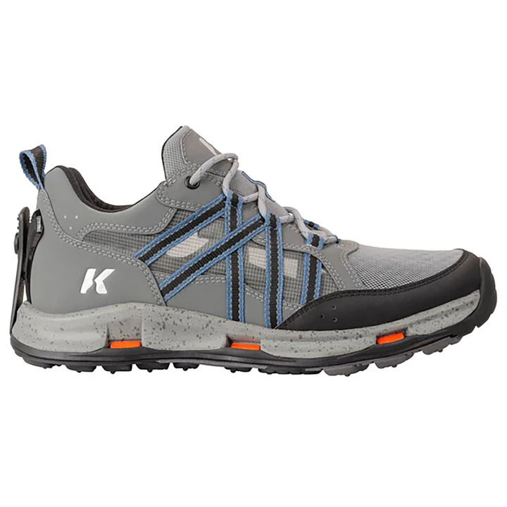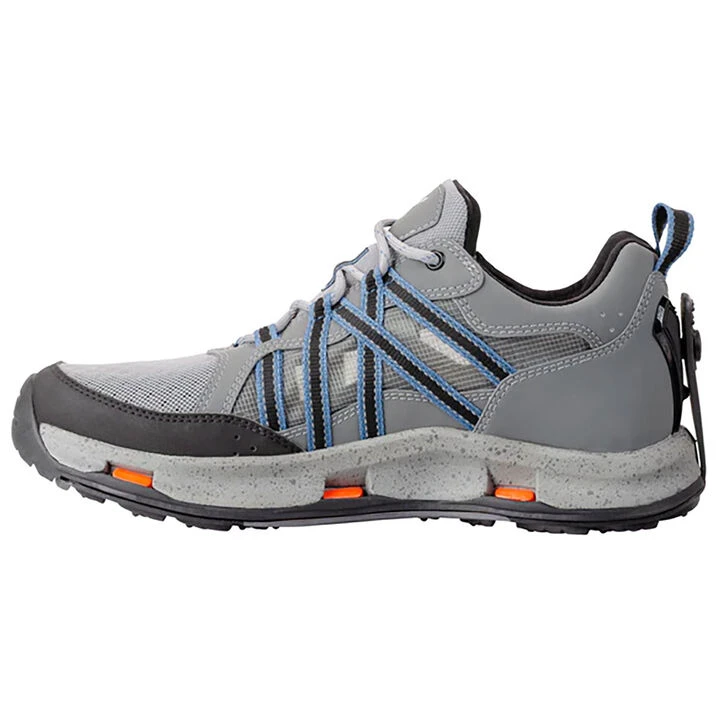 Korkers® Men’s All Axisâ„¢ Shoe features breathable, vented side panels that provide comfort for all warm weather pursuits. The combination of a covered toe and underfoot sole plate, provides added protection from rocks and uneven terrain.