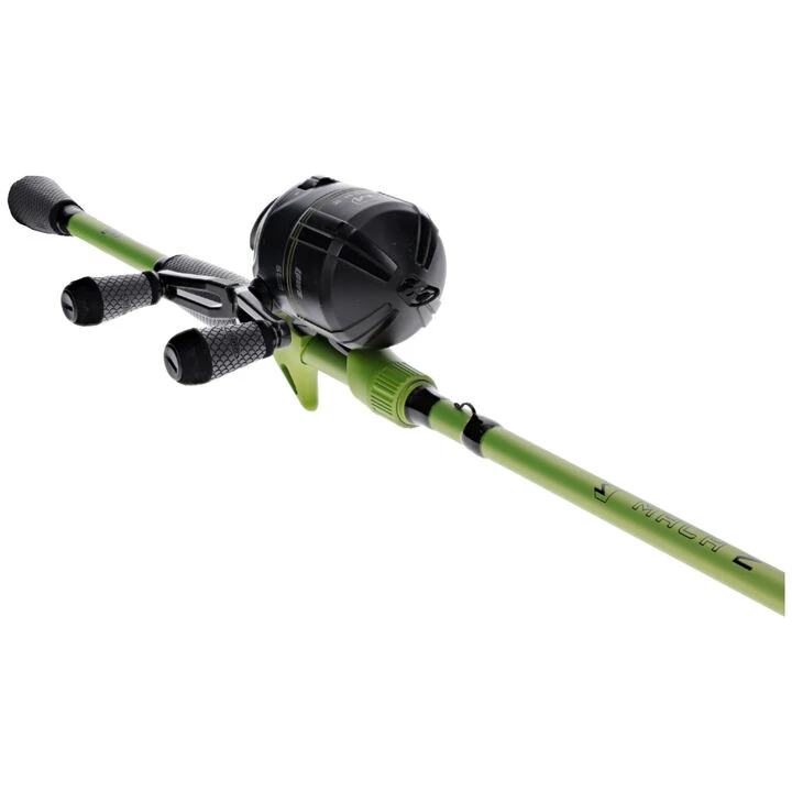 Perfectly paired to give anglers a full range of applications, the Mach™ 2 spincast combo balances strength and durability with sensitivity and ease of use. New and seasoned anglers alike fish the Mach spincast combo with the confidence. The spincast combo rod features a premium IM8 blank to yield the same backbone of its bigger Mach cousins. It’s strong enough for big baits and bigger fish and versatile enough for any chase.