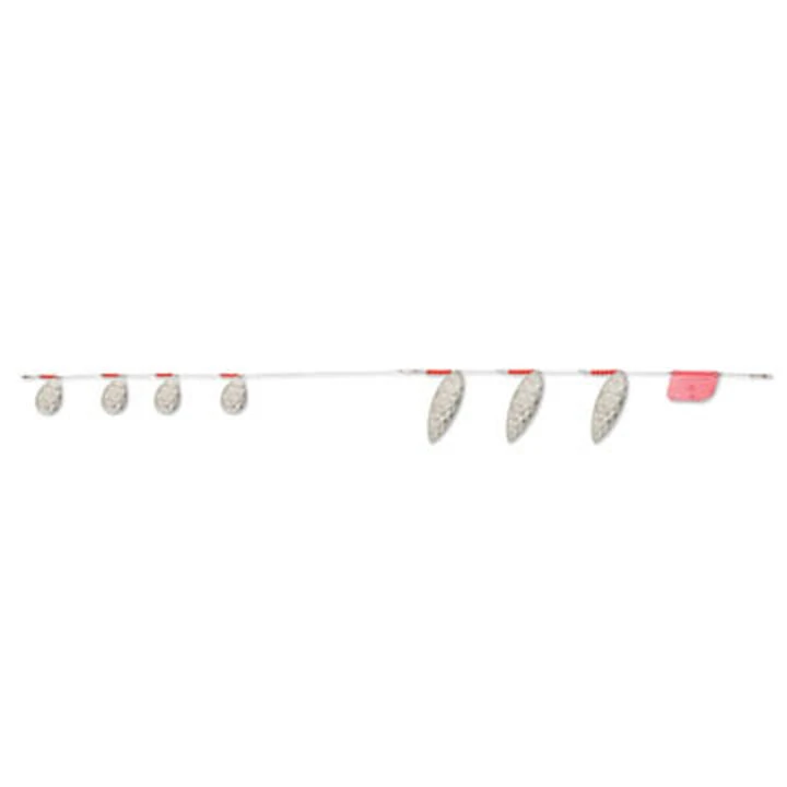 Combining both willow leaf and bear valley blades, blade speed and angle are mixed, putting out an incredible amount of vibration. On large bodies of water, consider mounting a Dave Davis troll directly to a downrigger ball and cluster lures in close proximity.