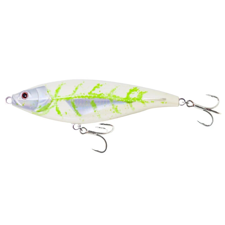 The Madscad 95 is a sinking stickbait that can be worked slow or fast with long or short twitches of the rod tip. A stop start retrieve creates an erratic swimming action that fish simply cannot resist. It is a long distance casting stickbait ideal for snook, tarpon, jacks, stripers, bass, muskie, walleye, salmon and just about every other coastal or freshwater predator species you can think of. The Madscad has been designed with a seductive action that fish just cannot resist.