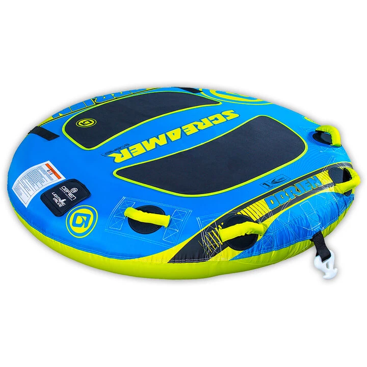 The O’Brien® Screamer is the perfect tube for a rider to get whipped out and bounced around to their heart’s content. Its flat deck with two, soft EVA body pads is comfortable to lay or kneel on. Multiple handles allow the rider to modify their position on the tube to handle any upcoming challenges that the driver musters up. If you are looking for a single rider tube, the Screamer Classic Deck Tube is definitely the way to go!