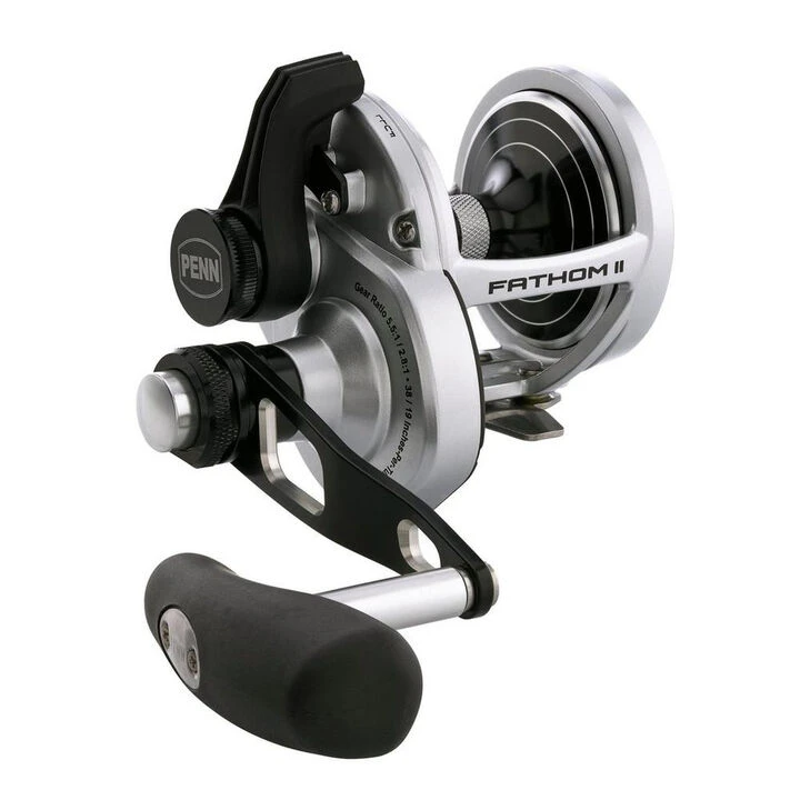The Fathomâ„¢ II Lever Drag reels take a class-leading reel and raise the bar even more. Integrating the palm side plate and frame allows the Fathom II Lever Drag reel to be more compact in hand and increase strength. Pull-to-Turn preset knobs allow the angler to truly set it, and forget it. At the Fathom’s core is a stainless steel main and pinion gear and a forged and machined aluminum spool for maximum durability.