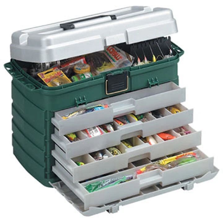 The Plano® 4-Drawer Tackle Box uses four drawers that incorporate four bait racks for storing lots of tackle.