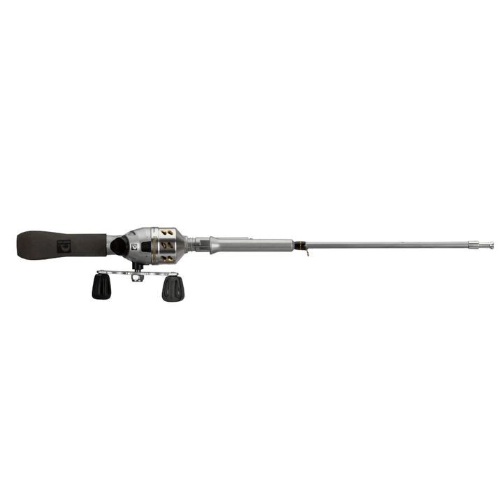 This tiny set up features a quality tiny spincast reel with a 2.8:1 gear ratio, double anodized aluminum nose cone, aluminum handle with dual knobs, and pre-spooled with 3 lb. monofilament. The 20″ inline Tangle-FREE™ rod retracts down to 14.5″ for easy storage. It’s perfect for a quick cast anywhere, anytime!