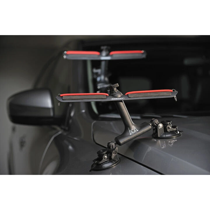 RodMounts® Suction mounting system safely and securely mounts to the exterior of your vehicle. Suction mounts can adhere to any smooth and non-porous surface. Four independent lever-lock suction mounts adhere to glass, aluminum, steel, plastic, fiberglass and carbon-fiber.