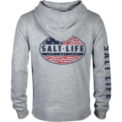 Perfect for a chilly night, Salt Life® Men’s Amerifinz Hoodie is a great addition to your wardrobe. Featuring a chest, back and sleeve screen print logos and made with a Cotton and Poly blend for a soft to the touch feel and comfortable fit. This Salt Life® pullover is the perfect hoodie for casual wear and layering during transitioning weather.
