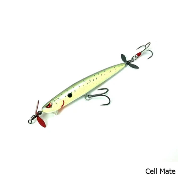 Designed to be the ultimate spy bait, the Spin John 80 comes with swivels incorporated into the line tie and the back-hook hanger. These swivels help the bait rock back and forth on the retrieve when the bait is falling. The swivel on the back of the bait makes it harder for a fish to get leverage on the bait and throw the hook out of its mouth.