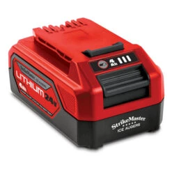 - 8″ auger drills 50 holes on a single charge (based on repeated tests with 16″ ice)