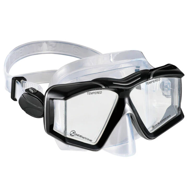 The U.S. Divers® Sideview LX II Snorkeling Mask extends your range of vision to a full 180° panoramic view so you can experience more! The adjustable buckles and Silicone face skirt provide a comfortable fit and seal against water leaks.